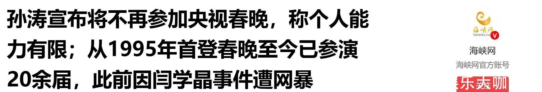 孙涛宣布将不再参加央视春晚,称个人能力有限 2026-01-27 09:06·海峡网